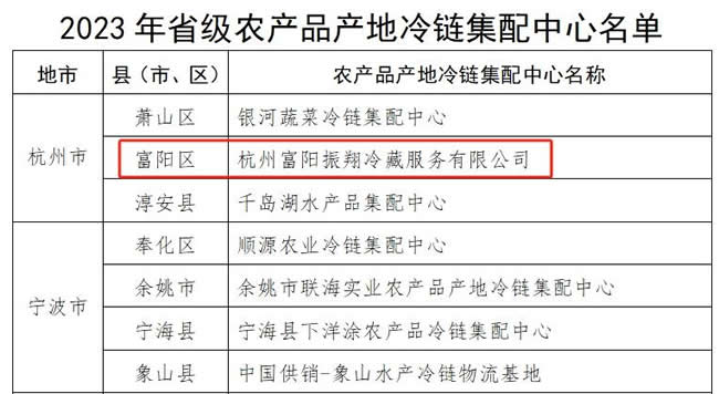 富陽振翔冷庫被認(rèn)定為“省級農(nóng)產(chǎn)品產(chǎn)地冷鏈集配中心”
